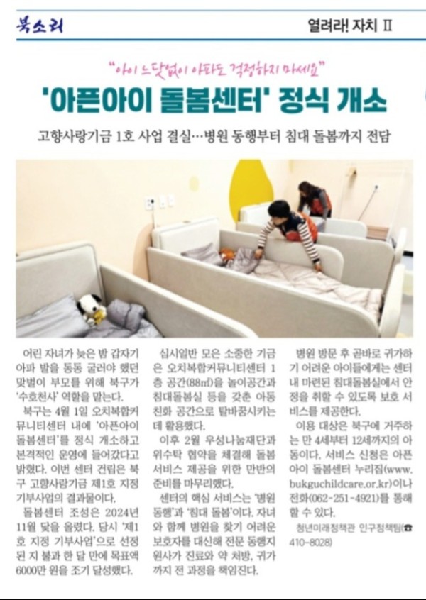 지역 소식 | 광주북구 아픈 아이 돌봄 센터 | 아픈아이 병원 동행 | 아픈아이 침대 돌봄