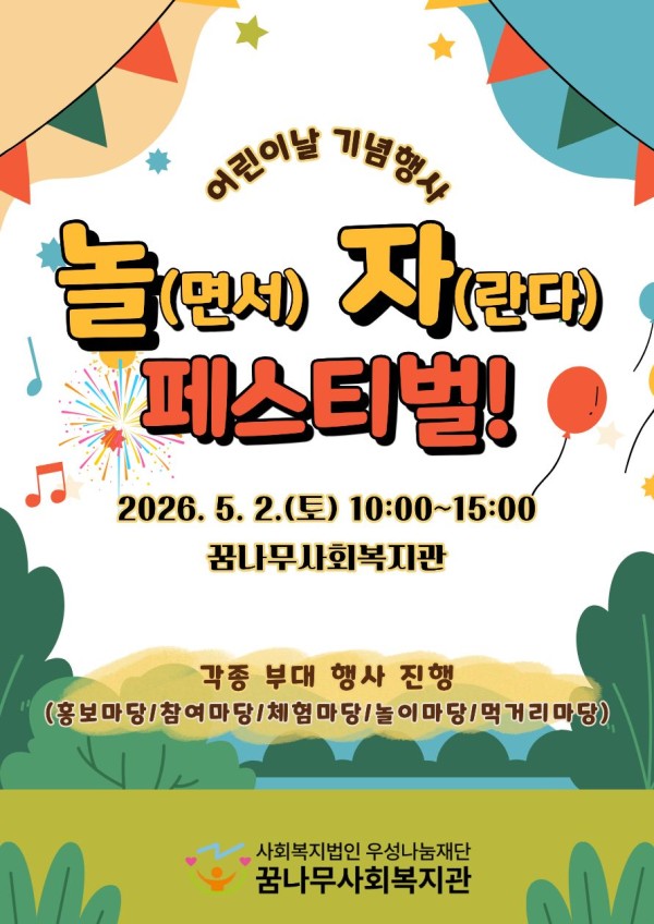 [공지] 어린이날 기념 ‘놀(면서) 자(란다) 페스티벌’ 참여 안내(5/2,토)